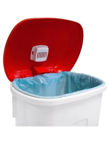 Ведро оснащено держателем для мусорного мешка или пакета, имеет педаль, при нажатии на которую распахивается крышка.