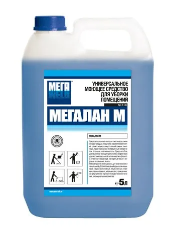 Средство для профессионального клининга МЕГАЛАН М предназначено для ручной и машинной мойки любых твердых поверхностей, представляет собой прозрачную однородную жидкость синего цвета.