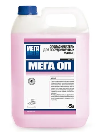 МЕГА ОП средство предназначенное для ополаскивания посуды всех видов в машинах бытового и промышленного назначения.