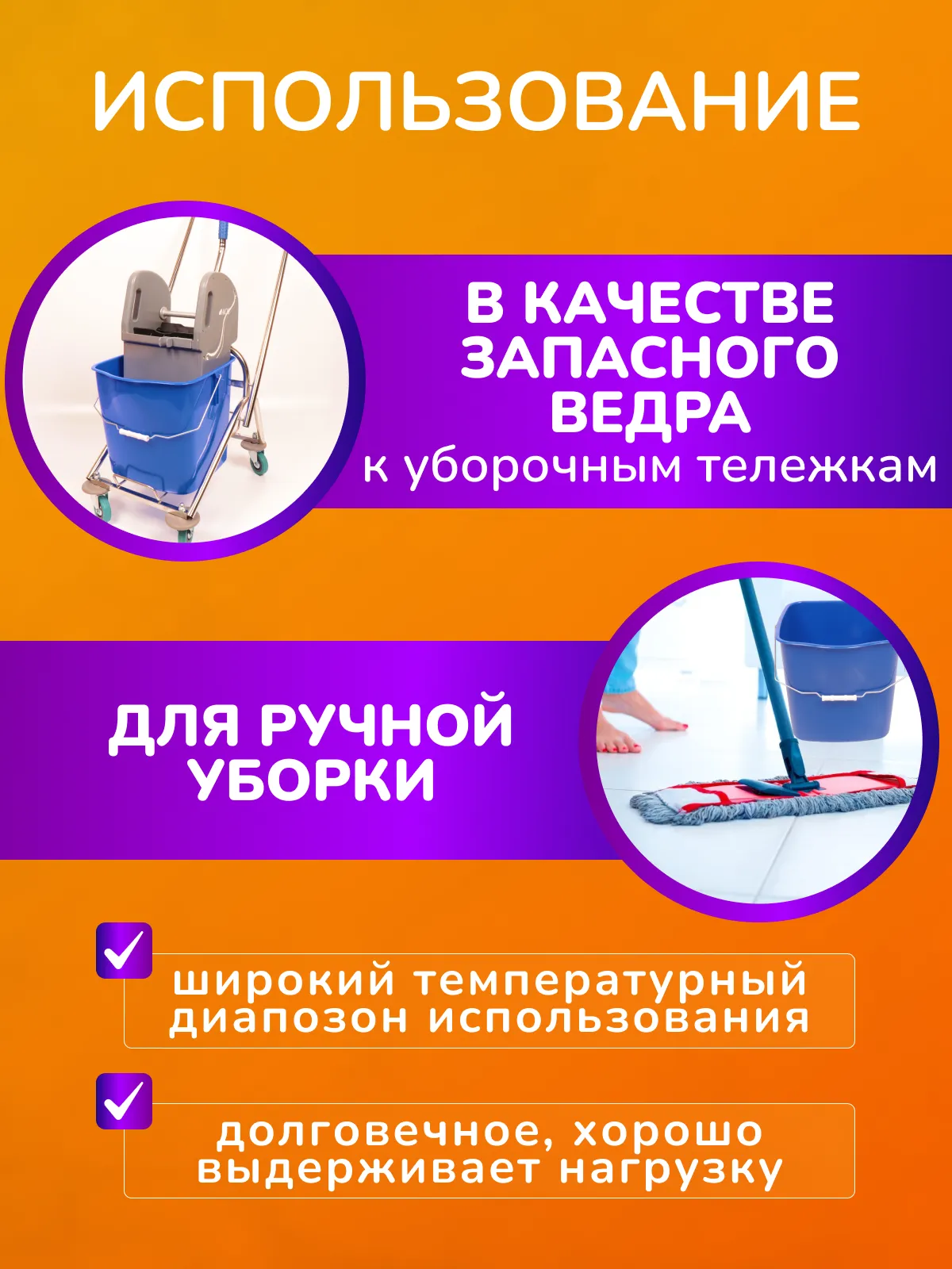 Использовать ведро можно не только как запасное к уборочным тележкам, но и для простой ручной уборки.