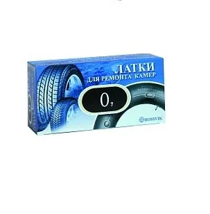 Для ремонта любых типов камер стоит применять латки камерные Rossvik. Большое разнообразие размеров позволяет подобрать оптимальный вариант накладки. Вулканизировать материалы можно «холодным» и «горячим» методами.
