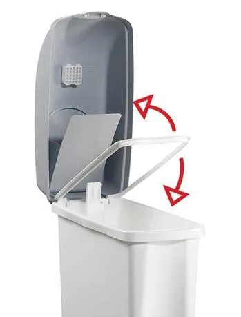 Конструкция оснащена съёмной крышкой, на поверхности которой расположен клапан-створка, открывающийся при нажатии педали.
