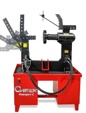 «Фаворит-С» отличается от других моделей усиленной поворотной скобой, которая облегчает установку ремонтируемого диска на планшайбу. Для установки диска часть скобы отводится в нерабочее положение, затем диск устанавливается на планшайбу, скоба возвращается в рабочее положение и фиксируется. Опция особенно удобна при работе с большими и широкими дисками. Конструкция прошла тестирование в собственных шиноремонтных мастерских и получила одобрение пользователей.