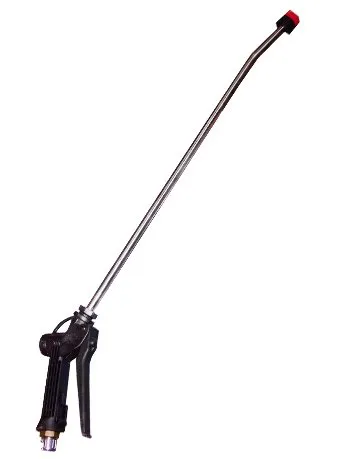 Носик пистолета представляет собой металлическую трубку. Металл устойчив к деструктивному воздействию химических растворов, что обеспечивает продолжительный срок эксплуатации оборудования. Ручка пистолета выполнена из ударопрочного пластика, что значительно облегчает вес насадки.