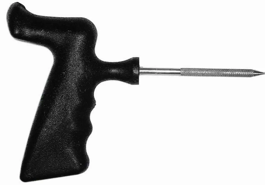 • Лучше, чтобы ручка для установки жгутов имела Т-образную форму. Ее комфортно держать в руке, она не выскальзывает и позволяет закрепить шило на поврежденной покрышке как можно быстрее.