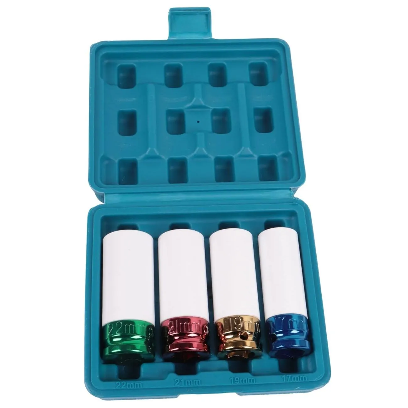 Набор торцевых головок 1/2 в пластиковом кейсе по 1 шт каждого размера - 17, 19, 21, 22 мм шестигранные |