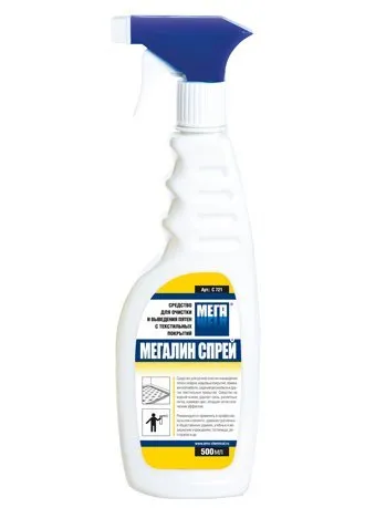 МЕГАЛИН СПРЕЙ средство для ручной очистки и выведения пятен с ковров, ковровых покрытий, обивки мягкой мебели, сидений автомобиля и других текстильных покрытий.