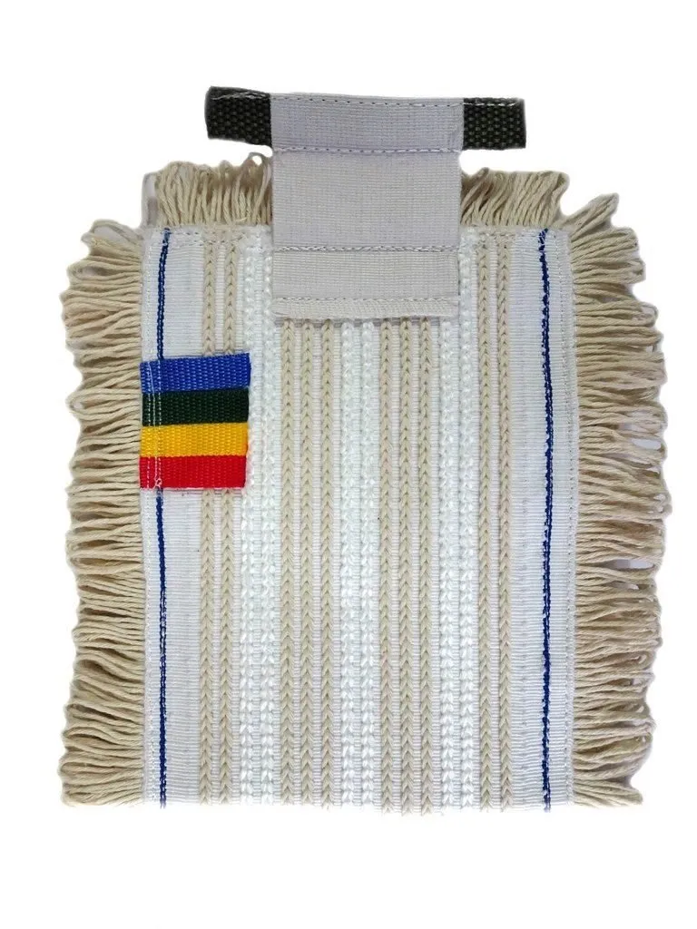 Карман – наиболее распространённый метод крепления насадок, он выглядит в виде кармашков по обеим сторонам насадки. Такой вид крепления подходит для использования с универсальными, рамочными и складными держателями (флаундерами). Несмотря на множество плюсов, такой моп для уборки имеет один минус: он не предназначен для бесконтактного отжима.