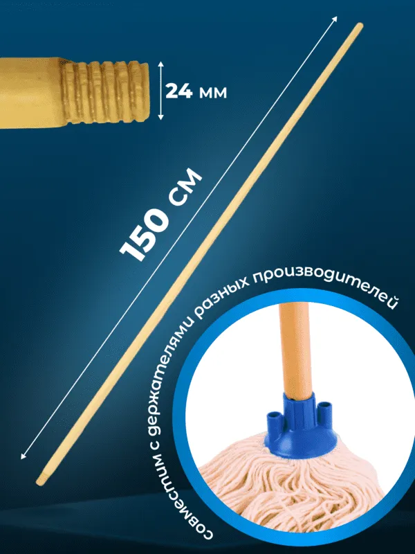 Рукоятка предназначена для крепления к насадкам для уборки. Фиксация ручки и насадки обеспечивается за счёт резьбы.