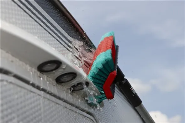Щётка с подачей воды, мягкая, предназначена для мойки фур и автобусов. Используется вместе с удлинительной рукояткой.
