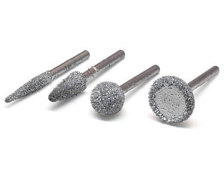 4 насадки - шероховальное перо, шероховальный конус, шероховальный шар, шероховальное кольцо. |