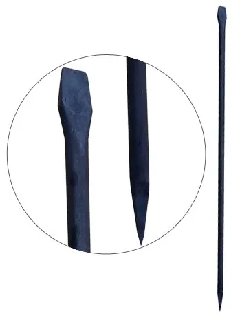 Лом имеет конусообразное и плоское заострение, выполнен из термообработанной стали марки 45, прочного материала устойчивого к внешнему силовому и атмосферному воздействию.