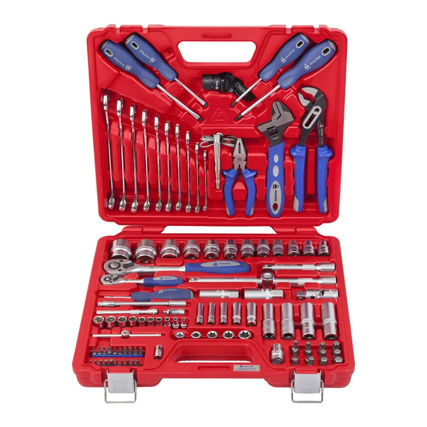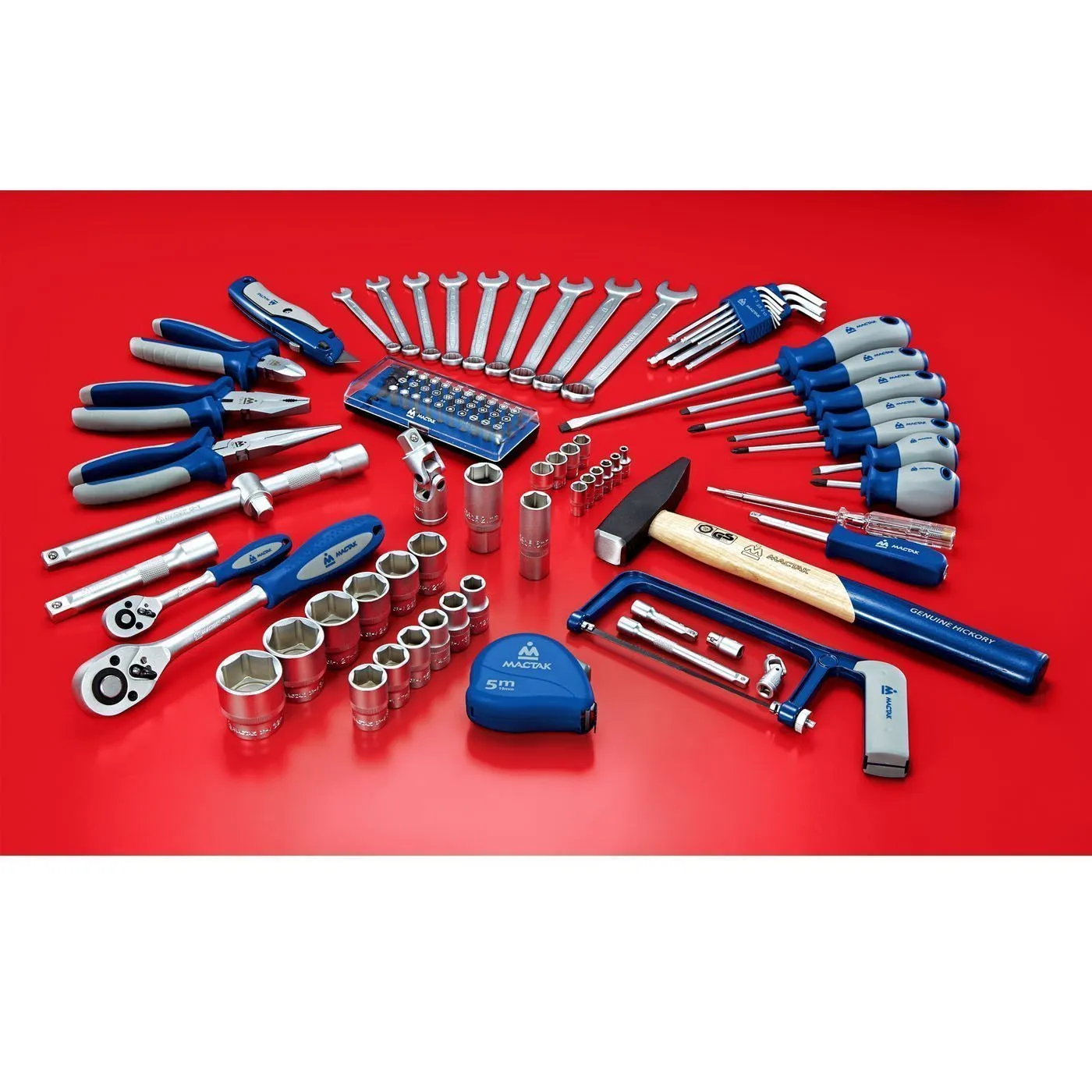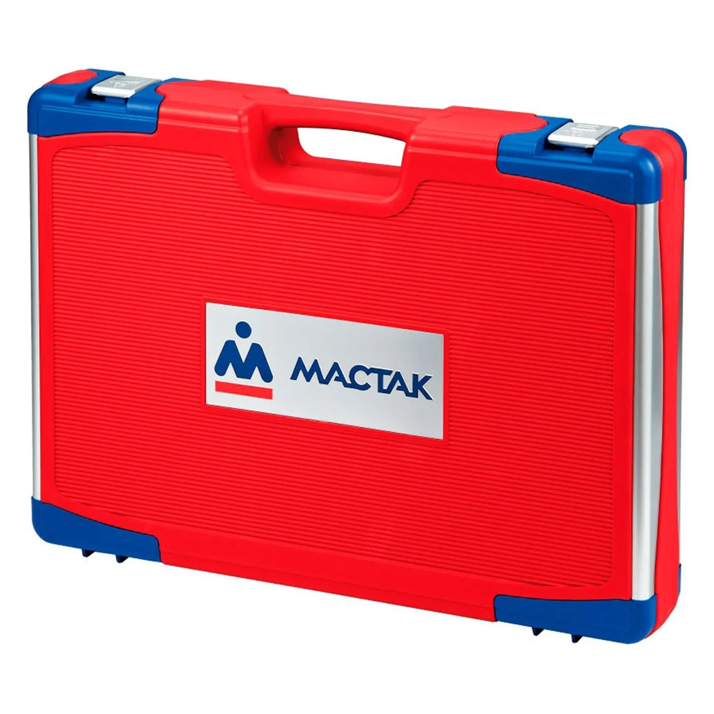 Инструменты марки МАСТАК изготовлены из инструментальной легированной хром-ванадиевой стали специального сплава. Технология изготовления ключей и головок включает в себя метод горячей ковки с последующей термообработкой, придающим инструментам особую прочность и высокую надёжность, что даёт возможность профессионального использования набора в условиях автосервисной мастерской, станции технического обслуживания, а также на производстве. Хромированное покрытие защищает инструменты от коррозии, специальная насечка на ободке головок, рукоятках воротков и других силовых инструментов исключает проскальзывание руки при работе, рукоятки отвёрток и шарнирно-губцевого инструмента выполнены из двухкомпонентного бензо- и маслостойкого материала. Кейс, изготовленный из прочного пластика, с металлическими замками, устойчив к ударам, удобен для хранения, защищает инструмент от воздействия влаги.