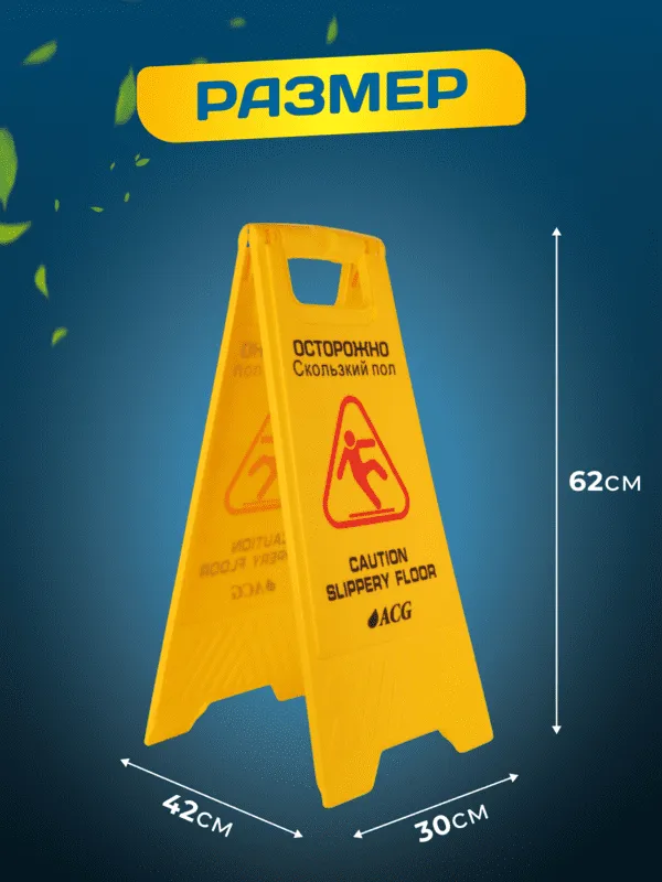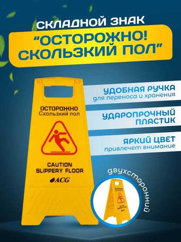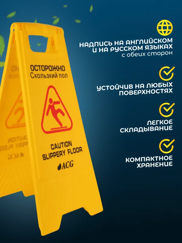Компания «Акваклининг Центр», один из лидеров на российском рынке производства эксклюзивного моечного оборудования, чистящих средств, инвентаря, спецодежды для профессиональной уборки, предлагает оптовым и розничным покупателям выгодные условия сотрудничества. Если вам нужно купить Знак "Осторожно скользкий пол" на русском и английском языке, добавьте товар в корзину, выберите необходимое количество и отправьте заказ нашим менеджерам. По всем вопросам, связанным с продукцией компании и условиями сотрудничества, пожалуйста, обращайтесь по телефону (495) 212-07-05
