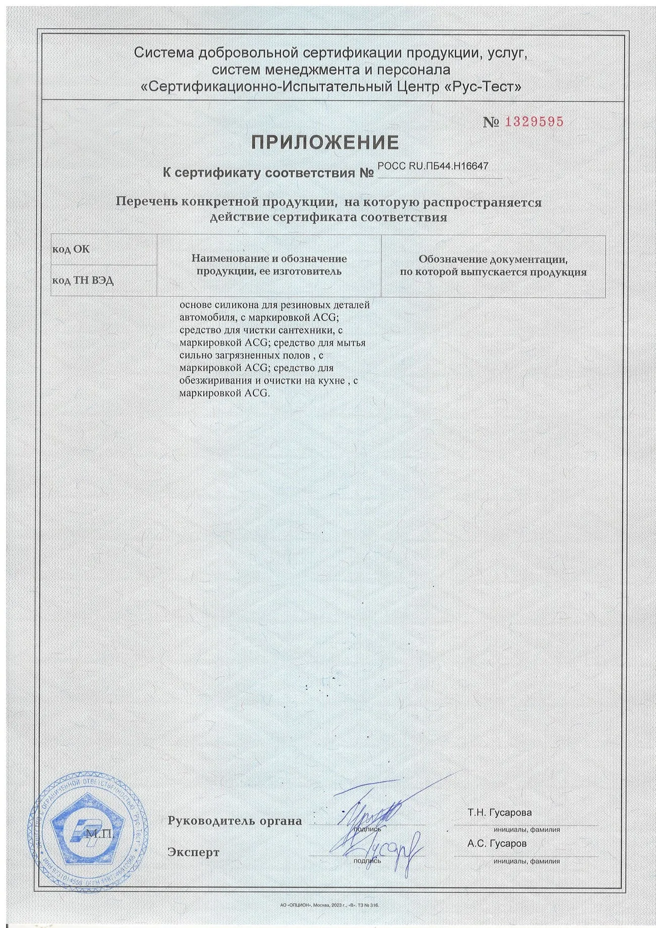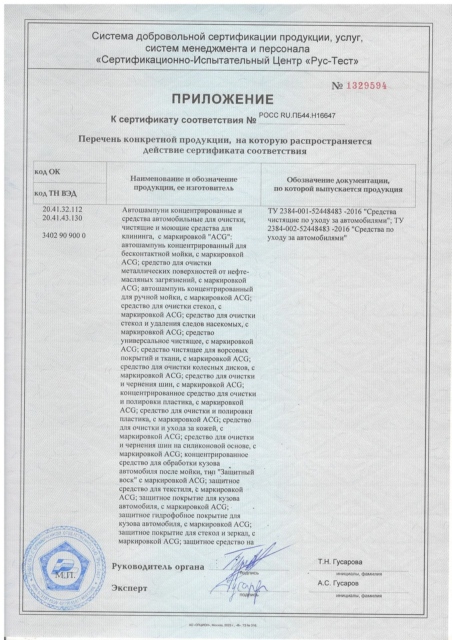 Приложение №1329594 к Сертификату соответствия – документ, подтверждающий соответствие продукции требованиям качества и безопасности, установленными для нее действующими стандартами и правилами (ГОСТ, ГОСТ Р, ГОСТ Р МЭК, ТУ, Технический регламент и пр.).